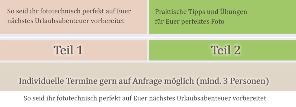 Mindestteilnehmerzahl 3 | Dauer je ca. 2 h